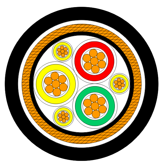 交聯(lián)聚乙烯絕緣聚烯烴護(hù)套銅絲纏繞包銅帶雙重屏蔽低煙無鹵阻燃變頻器用主回路電纜 |