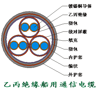 乙丙J緣船用通信電纜適用于河海船舶及水上建筑物傳輸電能,及話音信息,也可用于連接船用一般儀表和控制設(shè)備。