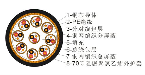 銅芯聚乙烯絕緣阻燃聚氯乙烯護套銅絲編織總屏蔽計算機用電纜 |