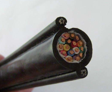 YFFBPG--- 銅芯丁晴聚氯乙烯絕緣及護套扁平行車鋼絲繩屏蔽軟電纜。